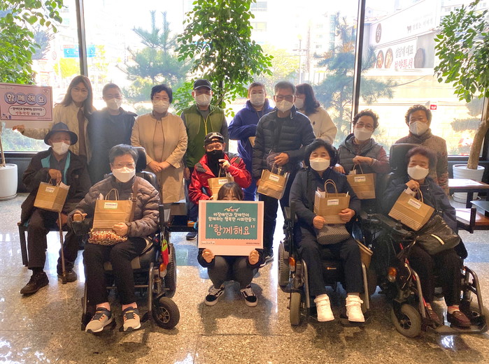 | ▲ 등록 장애인 및 돌봄가족들이 지난 12일 지역내 영화관에서 영화를 관람한 뒤 기념촬영을 하고 있다. (사진제공=관악구청) |