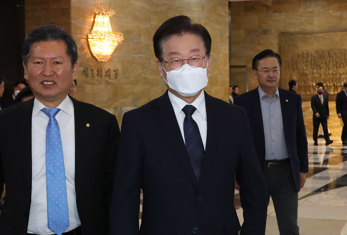 이런 가운데 민주당에선 이재명 대표에 대한 체포동의안 찬반을 당론으로 정할지를 두고 논의 중이다. 국민의힘, 정의당이 이재명 대표에 대한 체포동의안에 찬성하기 때문에, 민주당에서 체포동의안 반대를 당론으로 정해 표 관리에 들어갈 것으로 보인다.