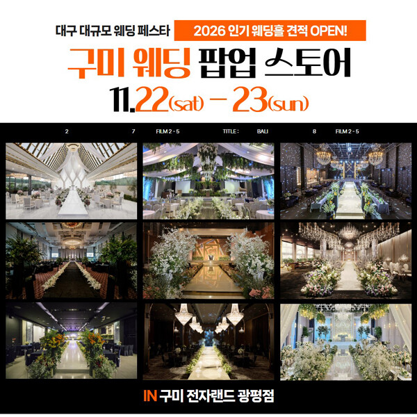 이에 박람회 관계자는 “구미 지역에서 가장 다양한 웨딩 제휴 업체와 협업하여 예비부부가 원하는 모든 정보를 한곳에서 확인할 수 있는 구조를 마련했다”라며, “웨딩홀 투어부터 스드메 패키지, 예물·한복·혼수가전에 이르기까지 결혼 준비 전반을 실질적으로 비교할 수 있는 장이 될 것”이라고 전했다.