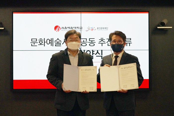 협약식에 참석한 정길배 용인문화재단 대표이사와 이남식 서울예술대학교 총장은 상호협력을 통해 유기적인 업무협력 체계를 구축하여 양기관의 문화예술 상호발전을 위한 활동에 적극 협력하기로 했다.