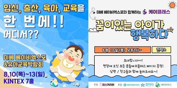 미베 베이비엑스포는 임신과 출산, 육아와 교육과 관련된 다양한 브랜드들이 참가하는 베이비페어로 유모차·카시트, 출산·육아용품, 유아교육·교재 등 다양한 제품들을 박람회 특가로 판매하며, 자세한 참가브랜드와 브랜드 혜택은 미베 베이비엑스포 홈페이지에서 확인 가능하다.