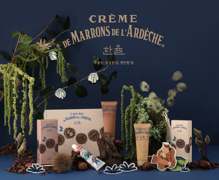 충남 부여산 무농약 밤 껍질을 넣어 만든 한율 대표 모공팩 ‘부들밤’ 라인과 프랑스 남부 리옹 지역의 야생밤을 원료로 하는 밤잼 브랜드 ‘크렘드마롱’이 밤 본연의 건강함으로 일상 속 휴식을 지향한다는 공통 가치로 함께했다.