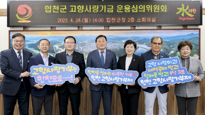 또한, 이날 참석한 위원들은 회의 후 합천군 고향사랑기부제 응원의 시간을 가졌다. 많은 사람들이 고향사랑기부제에 관심을 가지고 동참할 수 있도록 힘을 보태는 뜻깊은 자리였다.