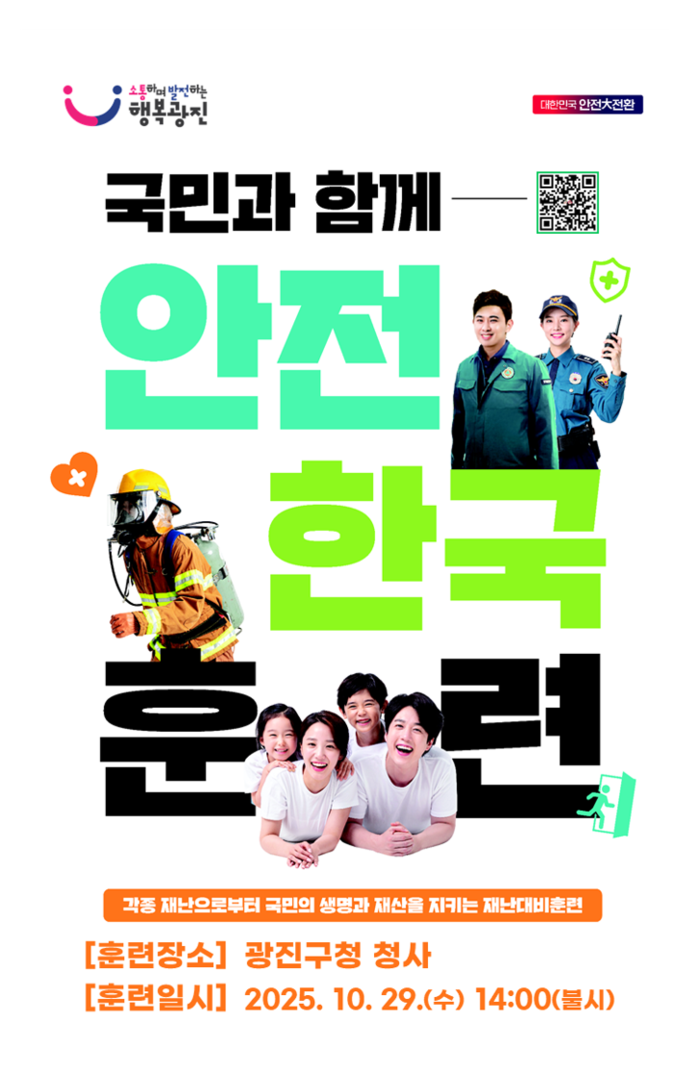 [시민일보 = 여영준 기자] 광진구(구청장 김경호)가 오는 29일 구청 청사 지상에서 ‘2025년 재난대응 안전한국훈련’을 실시한다.
