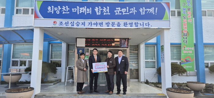세부 성금 사항은 ▲합천군 관내 저소득층 지원 2000만원, ▲가야면 저소득층 지원 1000만원을 각각 기탁했다.