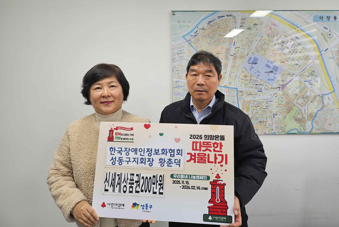 황춘덕 한국장애인정보화협회 성동구지회장은 “어려운 겨울을 보내는 장애아동 가정에 작은 도움이 되기를 바라는 마음으로 동참했다”라며 “앞으로도 성동구와 함께 장애인과 그 가족을 위한 다양한 지원 활동을 이어가겠다”라고 말했다.