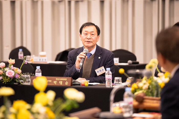 | ▲ 14일 양평군 ‘소노휴 양평’에서 진행된 경기도시군의회의장협의회 제175차 정례회의에 참석한 안산시의회 박태순 의장의 모습 /사진제공=안산시의회 |