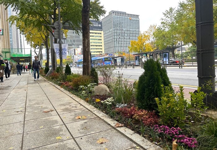유동 인구가 많은 세종대로사거리, 종각역 일대에는 관목 7종 557주, 초화류 13종 7365본을 식재하고 계절 초화까지 더해 계절의 변화를 오롯이 느낄 수 있는 차별화된 공간으로 꾸몄다.