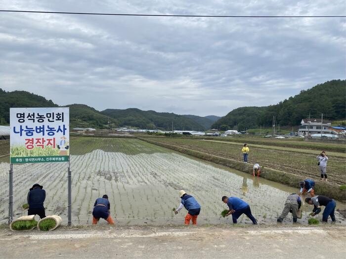 이 행사는 명석면 농민회에서 매년 실시하고 있으며, 이날 심은 모는 여름철 잡초제거, 비료주기 등 꾸준하게 관리하여 가을철에 수확하고, 수확한 쌀은 연말 지역 내 독거노인, 한부모가정 등 소외계층에게 전달된다.