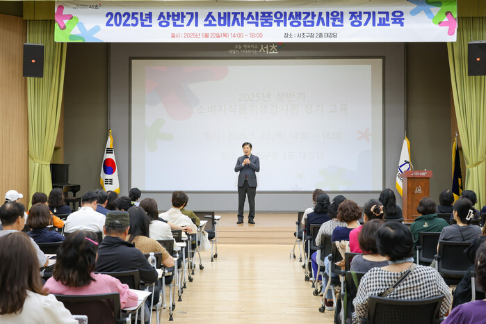 [시민일보 = 박소진 기자] 서초구(구청장 전성수)가 최근 구청 2층 대강당에서 서초구 소비자식품위생감시원 107명을 대상으로 ‘2025년 상반기 소비자식품위생감시원’ 정기교육을 실시했다고 23일 밝혔다.