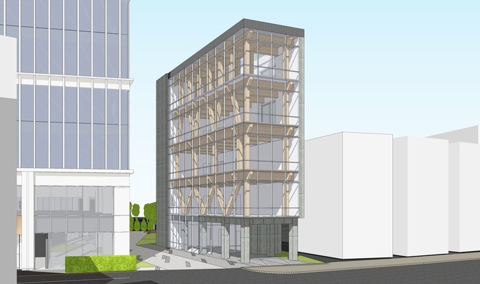 건축계획(안) 주요 내용으로는 ‘필로티와 코어를 제외한 기둥·보에 국내산 낙엽송을 사용한 목구조 계획’, ‘층별 부재 크기와 간격을 조정해 다양한 목구조 경험을 제공’, ‘유지·관리를 위한 투명 커튼월 마감’ 등이 있다. 또 1개 층 바닥은 목재를 사용해 층간소음 문제에 대한 기술적 도전 역시 도모할 계획이다.