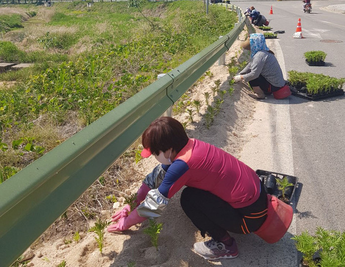 농업창업단지 자치회(회장 안순자)는 11일 주민들과의 화합을 도모하고 아름다운 마을 만들기의 일환으로 마을 진입로에 여름꽃(메리골드, 백일홍) 2천 본을 식재함과 동시에 주변 환경 정비를 했다.