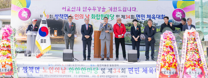 백종복 쌍책면 체육회장은 “따뜻한 봄을 맞아 경로잔치와 면민체육대회를 성황리에 개최하게 되어 기쁘고, 면민들과 오랜만에 화합과 소통의 자리를 갖게 되어 행복하다”며 “행사 준비에 함께해주신 모든 분들께 감사드린다”고 말했다.