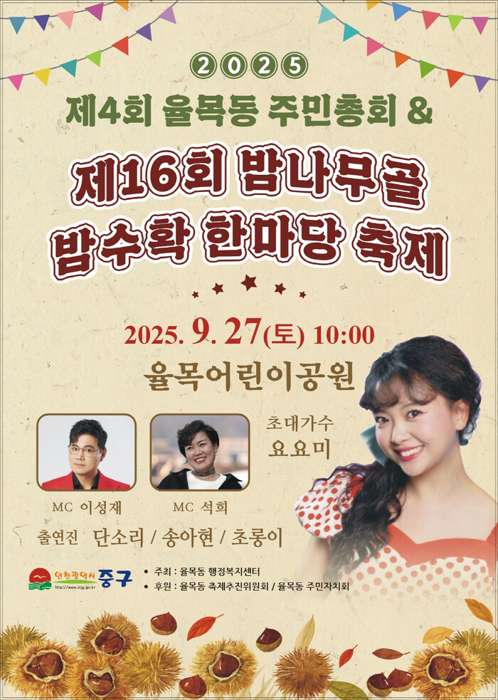 이번 행사는 율목동의 지명 유래인 밤나무와 함께 수확의 기쁨을 나누고, 주민들이 직접 참여해 화합을 다지는 데 목적을 뒀다. 축제는 율목동 축제추진위원회(위원장 박창길)와 율목동 주민자치회(회장 이규택)의 후원으로 진행된다.