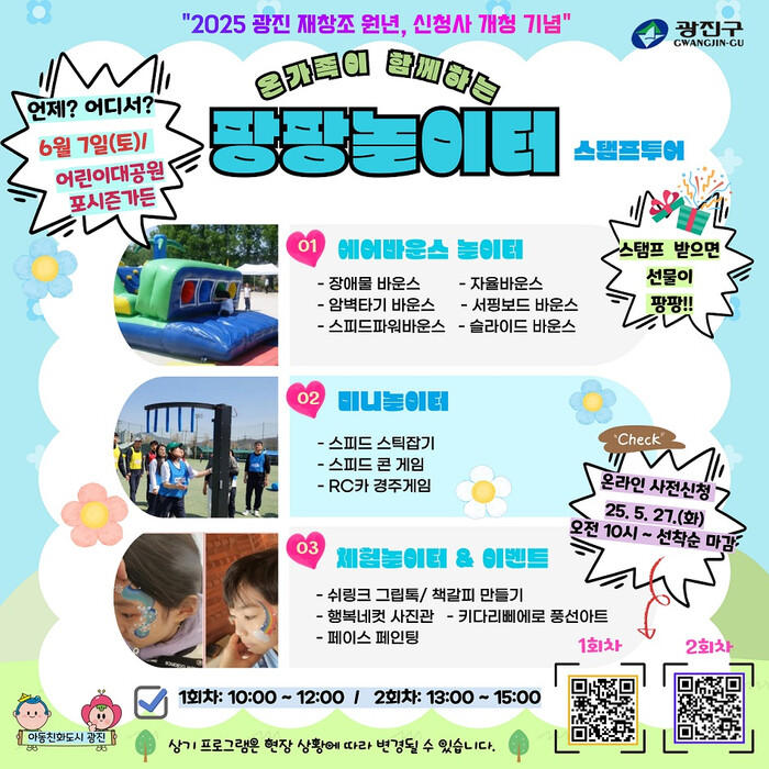 [시민일보 = 여영준 기자] 광진구(구청장 김경호)는 오는 6월7일 어린이대공원 포시즌가든에서 ‘2025 팡팡놀이터’를 개최한다.