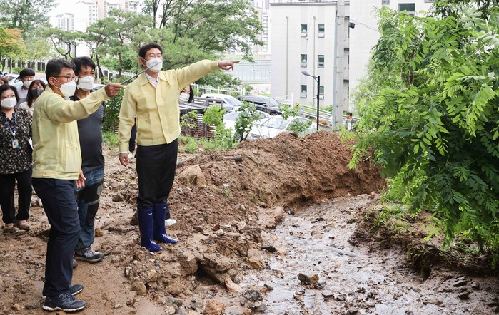 이 시장은 집중호우가 계속된 만큼 이날 예정돼 있던 취임식을 취소했다. 대신 오전 8시 현충탑을 참배한 후 곧바로 관내 수해 현장을 찾아 상황을 점검하고 대책 마련을 지시했다.