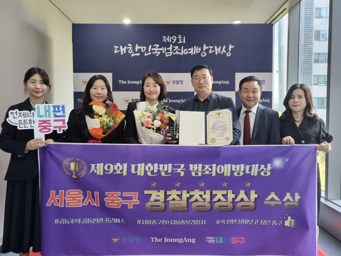 [시민일보 = 여영준 기자] 중구(구청장 김길성)는 최근 대한민국 범죄예방대상에서 구가 도입한 ‘공동주택 공동현관 프리패스’ 사업으로 경찰청장 표창을 수상했다고 31일 밝혔다.