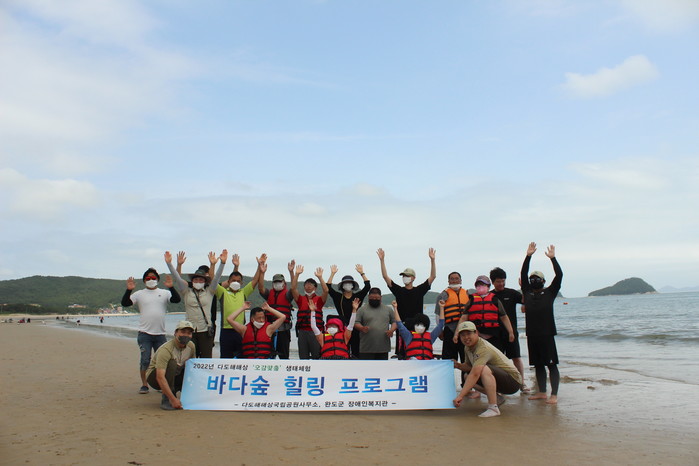 이번 프로그램은 바다 수온과 안전을 고려하여 완도 명사십리해변에서 7월 12일 첫 번째 ‘오감맞춤’ 바다체험 프로그램을 시작하였으며, 특수 휠체어를 활용한 바다체험과 여름철 필수품 ‘나의 부채 만들기’, 1회용품 사용금지 ‘사진컵 만들기’ 등 다양한 체험프로그램을 운영한다.