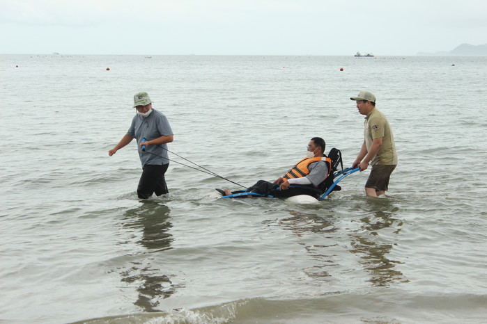 「특수 수상휠체어」는 바다에 접근하기 힘든 장애인과 노약자등 사회적약자의 이동을 쉽고 편안하게 하기 위해 만들어진 특수 휠체어로 바퀴가 넓은 고무튜브로 만들어져 부력을 활용한 물놀이와 모래사장을 다닐 수 있는 것이 특징이다.