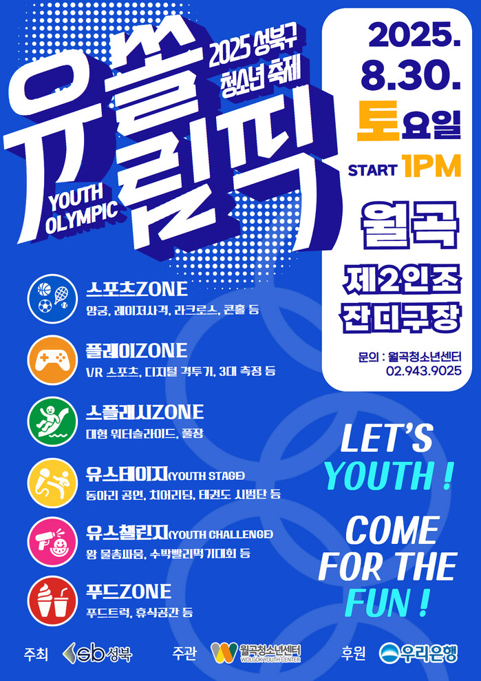 [시민일보 = 문민호 기자] 서울 성북구(구청장 이승로) 대표 청소년 축제 ‘유쏠림픽(YOUTH OLYMPIC)’이 오는 30일 오후 1시부터 월곡제2인조잔디구장에서 개최된다.
