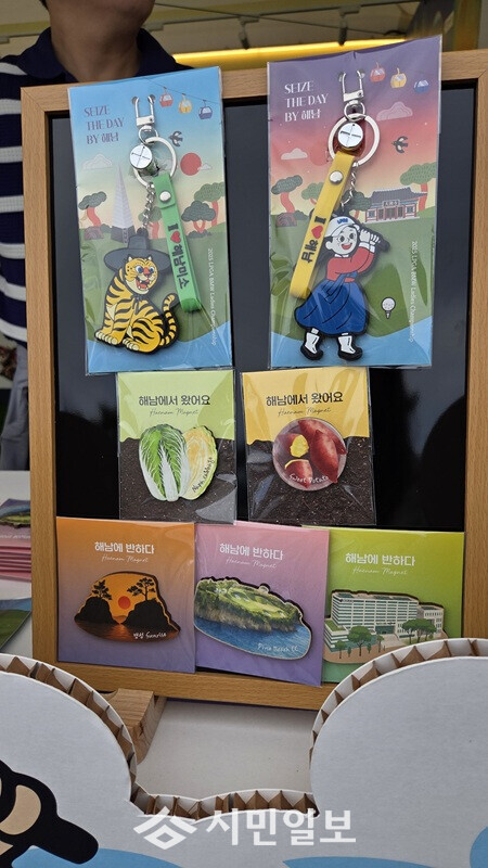 이외에도 k-문화 콘테츠로 선풍적 인기를 끌고 있는 한국적 이미지를 담은 민화 호랑이와 한복입은 골퍼의 이미지 등을 활용한 키링과 지역특산품 및 해남군 신청사 이미지를 담은 마그넷 5종도 함께 선보이고 있다.