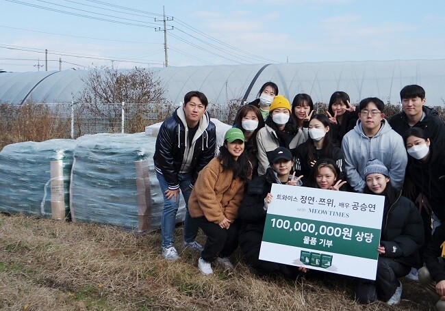 프리미엄 고양이 모래 구독 서비스를 제공하고 있는 ‘미우타임즈’에 따르면,지난 12일 진행된 봉사활동에는 트와이스 정연, 쯔위, 배우 공승연과 미우타임즈 임직원 20여 명이 참여했다. 안성 ‘평강공주보호소’에 방문해 미우타임즈 모래와 간식 제품을 전달하고 견사를 청소하는 등 봉사활동을 진행했다.