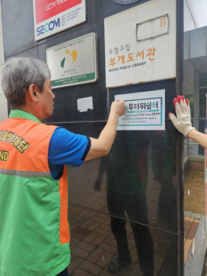 [인천=문찬식 기자] 인천 부평구(구청장 차준택) 지역자율방재단은 본격적인 여름철을 맞아 무더위쉼터 점검 및 폭염 피해 예방 홍보 등 폭염피해 예방을 위한 활동을 진행하고 있다고 23일 밝혔다.