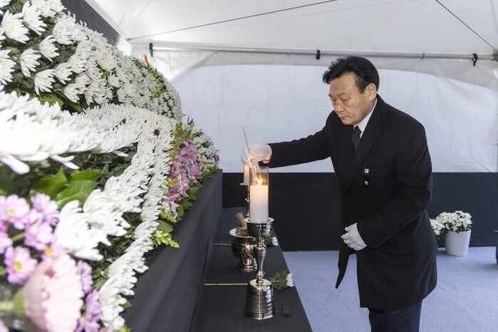 박 의장은 헌화와 묵념을 하며 “이번 사고로 소중한 생명을 잃은 희생자들에게 깊은 애도를 표하며, 유가족분들께도 진심으로 위로의 마음을 전한다”라고 말했다.