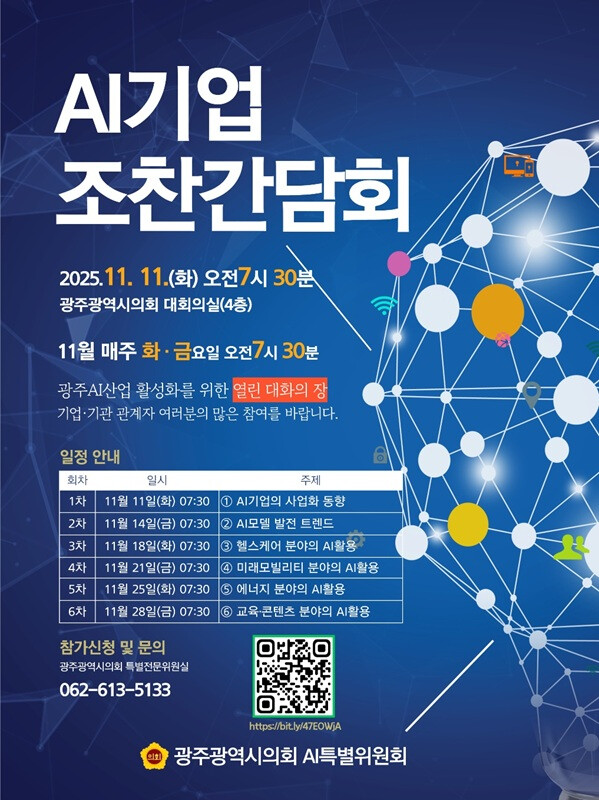 광주 AI기업과 11월 중 6차례 릴레이 조찬간담회 예정