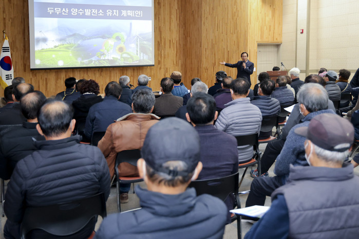이날 설명회는 두무산 양수발전소 유치에 대한 사업 설명과 주민들이 우려하고 있는 환경피해 등에 대해 구체적으로 설명하고, 사업에 대한 정확한 정보전달을 통해 주민들의 오해를 해소하고 주민과의 소통을 위해 마련됐다.