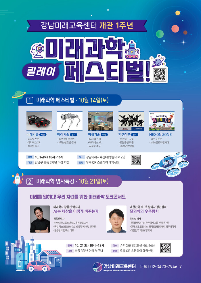 [시민일보 = 이대우 기자] 서울 강남구(구청장 조성명)가 강남미래교육센터 개관 1주년과 세계우주주간(10월4~10일) 기념을 위해 미래과학 페스티벌과 명사 특강을 진행한다.