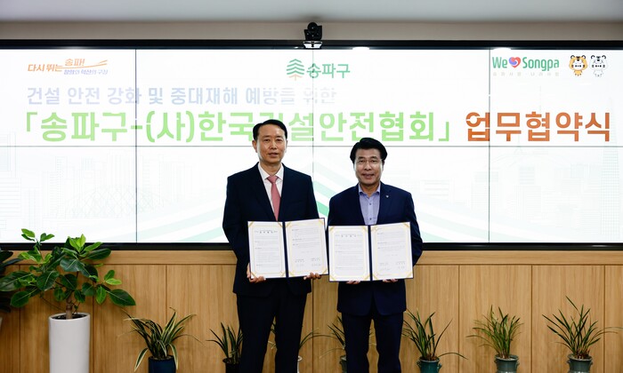 [시민일보 = 이대우 기자] 송파구(구청장 서강석)가 최근 지역내 건설 안전 강화와 중대재해 예방을 위해 사단법인 한국건설안전협회와 지속적 상호협력을 약속하는 업무협약을 체결했다고 2일 밝혔다.
