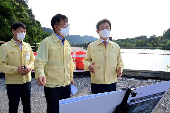 조규일 진주시장은 9일 여름철 우수기를 맞이하여 ‘희망교~남강댐 자전거·보행도로 조성공사’현장을 직접 방문하여 사전점검을 실시했다.