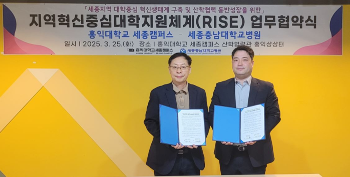세종충남대병원 이정길 연구원장 또한 “세종충남대학교병원의 풍부한 임상 경험과 노하우는 홍익대의 디지털 헬스케어 연구에 큰 도움이 될 것입니다. 세종충남대학교병원은 홍익대와의 협력을 통해 디지털 헬스케어 분야에서 기술 개발 및 상용화를 촉진하고, 지역 기업과의 협력을 지원하여 지역 경제 활성화에도 기여할 것입니다.” 라며 지역혁신중심대학지원체계(RISE) 사업의 성공적인 수행을 위해 적극적으로 협력할 것을 약속했다.