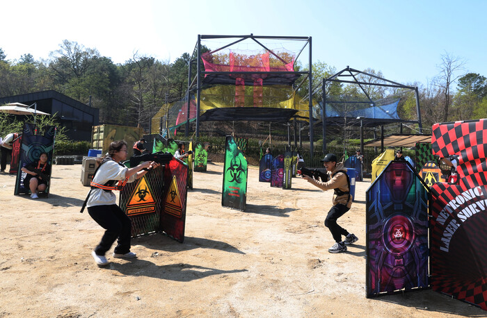 ▲서바이벌 게임은 은폐물을 기존 15개에서 25개로 늘리고, 페인트볼 및 BB탄 대신 안전한 ‘레이저 태그(Laser Tag)’ 방식으로 바꿨다. 레이저 태그 방식은 센서를 장착한 조끼와 레이저 총을 사용해 물리적인 접촉 없이 안전하게 게임을 진행할 수 있다.