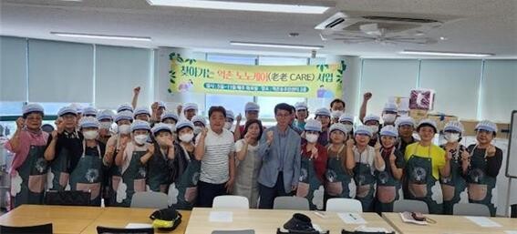노노케어(老老 CARE)는 독거어르신들의 정서적 소외감을 해소시키고 선순환 돌봄문화를 조성하는 사업이다. 건강한 어르신이 스스로 돌봄이 어려운 독거어르신에게 직접 밑반찬을 만들어 배달하며 말벗 제공과 안부 확인을 한다.