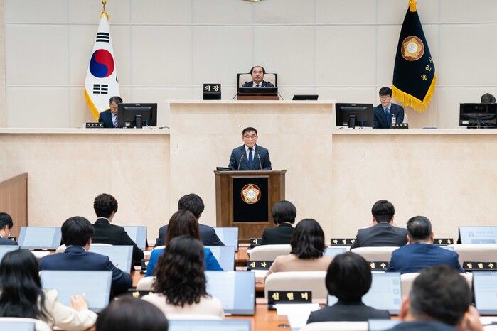 이날 윤원균 의장은 제안설명에서 정부는 지난 3월 15일 용인시 남사읍, 이동읍 일원을 국가첨단산업단지로 지정하고, 2042년까지 300조 원을 투입해 시스템 반도체 공장 5개를 구축해 국‧내외 소부장, 팹리스 기업 150개를 유치하겠다는 계획을 발표했다고 언급했다.
