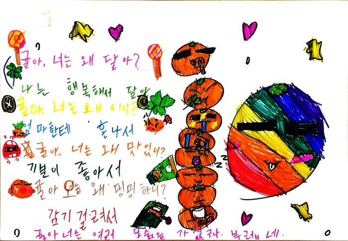 | ▲ 2024년 식재료 맛 동시화 공모전 대상 수상작(섬기는지역아동센터 ‘귤’)(사진=구로구청 제공) |
