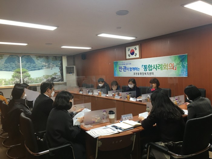 경기 포천동행정복지센터가 최근 민·관이 협력하는 통합사례회의를 열고 과도한 채무로 인해 어려움이 있는 지적장애 가구를 대상으로 지지체계 구축 확보 마련 및 사회적 관계망 형성을 위한 대응 방안에 대해 집중적으로 논의했다. 사진은 이날 회의가 진행되고 있는 모습. (사진제공=포천시청)