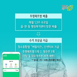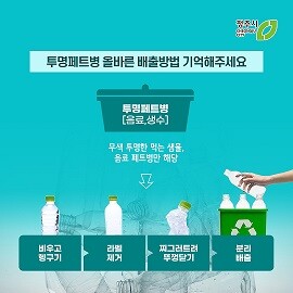 시 관계자는 “단독주택의 경우 투명페트병은 일반쓰레기, 유색 플라스틱 등과 섞여 버려지고 있는 실정”이라며, “시민들께서도 투명페트병 별도배출에 대해 관심을 갖고 적극적으로 참여해 주시기 바란다”고 말했다.