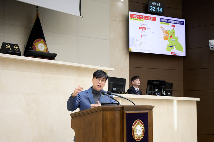 김 의원은 "용인시 발전을 위해 어느 노선이 더 적합하다고 판단하는지 명확한 입장을 밝혀 달라"며, 특히 민간제안 방식인 JTX 추진 시 용인시 재정 부담을 면밀히 검토했는지 여부를 질문했다.
