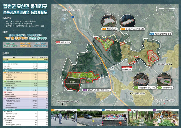 농림축산식품부가 주관하는 ‘22년 농촌공간 정비사업 공모에서 가야면 사촌리 일원, 가회면 덕촌리 일원이, 그리고 2024년에 야로면 하빈1구 일원, 2025년 묘산면 웅기지구 일원이 선정돼 사업비 544억원을 확보했다.