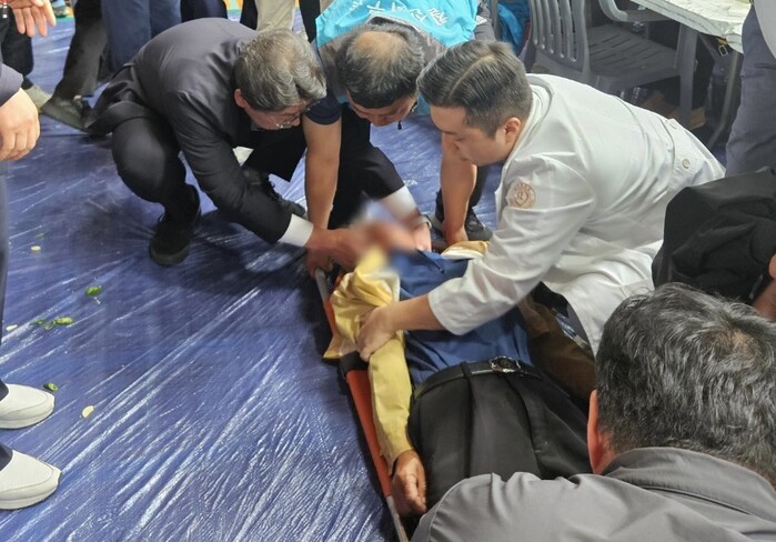 다행히 행사에 참석한 홍태용 김해시장이 박씨에게 달려가 긴급하게 응급처치를 하였고 행사의 의료지원을 나와있던 한사랑병원의 의료지원팀이 김해삼승병원으로 긴급 후송하였다.