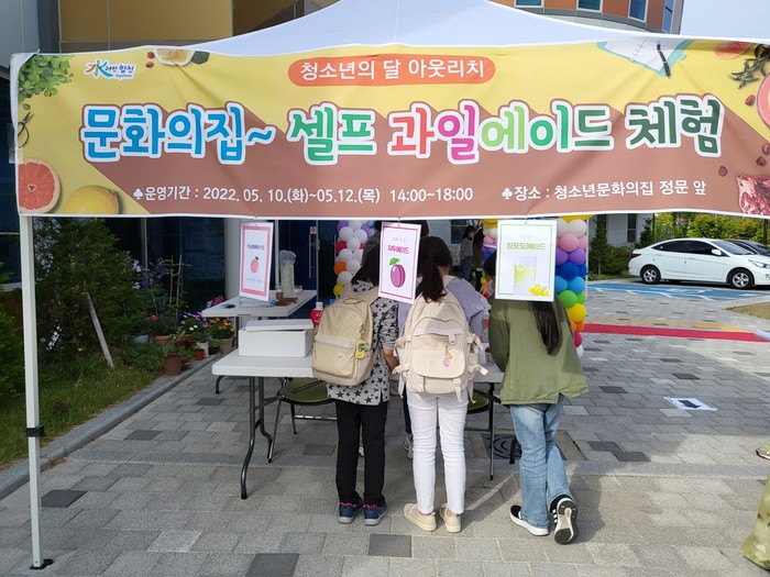 이번 행사는 그동안 코로나-19로 활동에 제약이 많았던 청소년과 주민들에게 맞춤형 심리검사, 샌드위치 만들기, 소망 고리, 셀프 과일에이드 체험 등 소통과 참여의 시간을 마련했다.