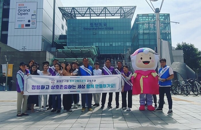 [시민일보 = 이대우 기자] 서울 동대문구(구청장 이필형)는 최근 청량리역 광장에서 동부교육지원청과 함께 ‘지역사회와 함께하는 청렴캠페인’을 실시했다.