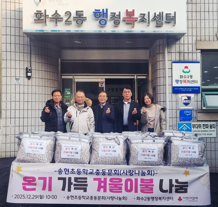 [인천=문찬식 기자] 인천 동구 송현초등학교총동문회 사랑나눔회는 지난달 29일 화수2동 지역사회보장협의체(민간위원장 강상원)에 겨울 이불을 기탁했다고 밝혔다.