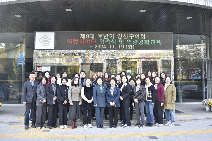 [시민일보 = 박소진 기자] 서울 양천구의회(의장 윤인숙)가 지난 19일 오전 구의회 1층 회의실에서 제9대 후반기 의정참여단 위촉식 및 역량강화교육을 실시했다.