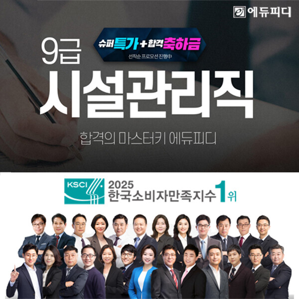 이에 에듀피디는 9급 시설관리직 공무원 공채 및 경채 전형별 시험에 맞춰 전 과목 ‘기초+이론+문풀+기출’ 구성의 ‘합격패키지’를 기획하고 합격을 위해 가장 효율적인 학습방법을 제시한다.