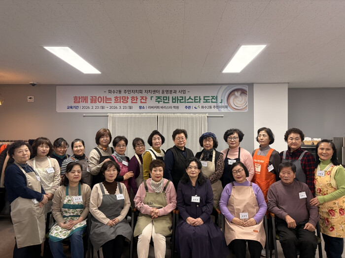 [인천=문찬식 기자] 인천 동구 화수2동 주민자치회(회장 오주현)는 지난 23일 ‘함께 끓이는 희망 한 잔, 주민 바리스타 도전’개강식을 열고 본격적인 교육을 시작했다고 밝혔다.