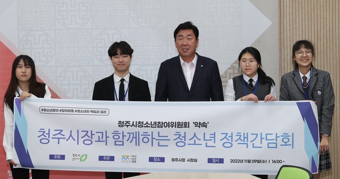 이 시장은 청주시청소년참여위원회로부터 청소년 정첵 제안서를 전달받고 청소년들과 의견을 나눴다.